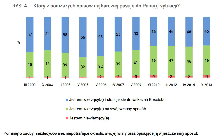 Kluczowe wnioski:- 89% Polaków identyfikuje się jako katolicy, co czyni Polskę jednym z najbardziej katolickich krajów w Europie.